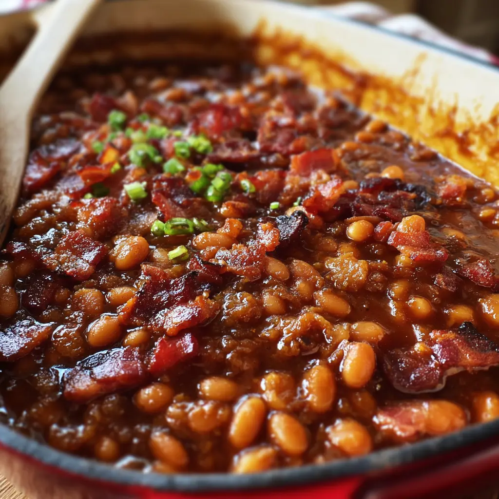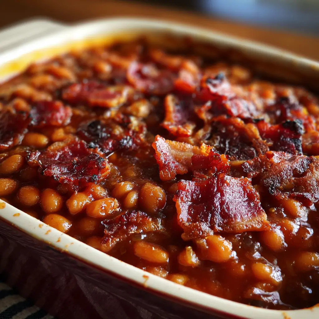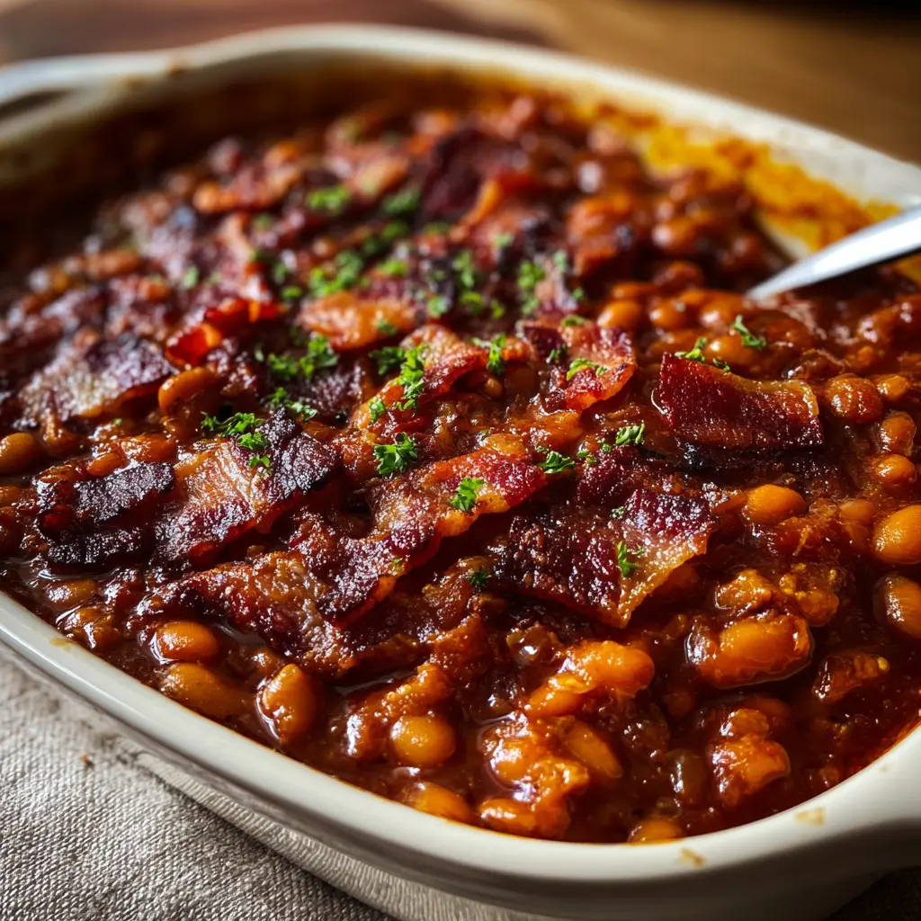 Experience the rich and comforting flavors of Southern-Style Baked Beans, enhanced with the savory taste of turkey bacon. Perfect as a side dish for barbecues or family gatherings.