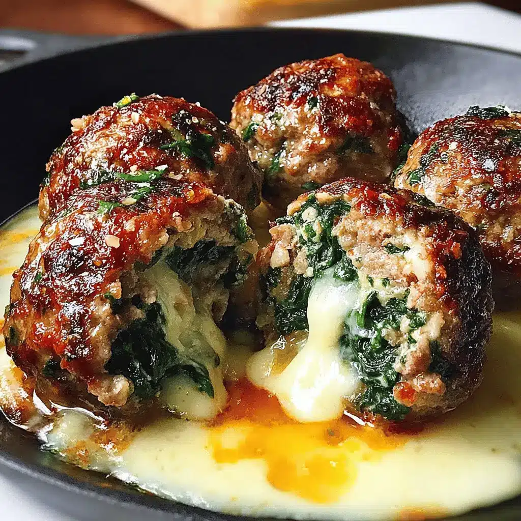 So now you’re ready to enjoy your delicious Spinach-Garlic Meatballs Stuffed with Mozzarella! Serve them with pasta, in a sub, or even alongside a fresh salad for a complete meal. Remember, cooking is about experimenting, so don’t hesitate to adjust the ingredients to fit your taste—enjoy the process!