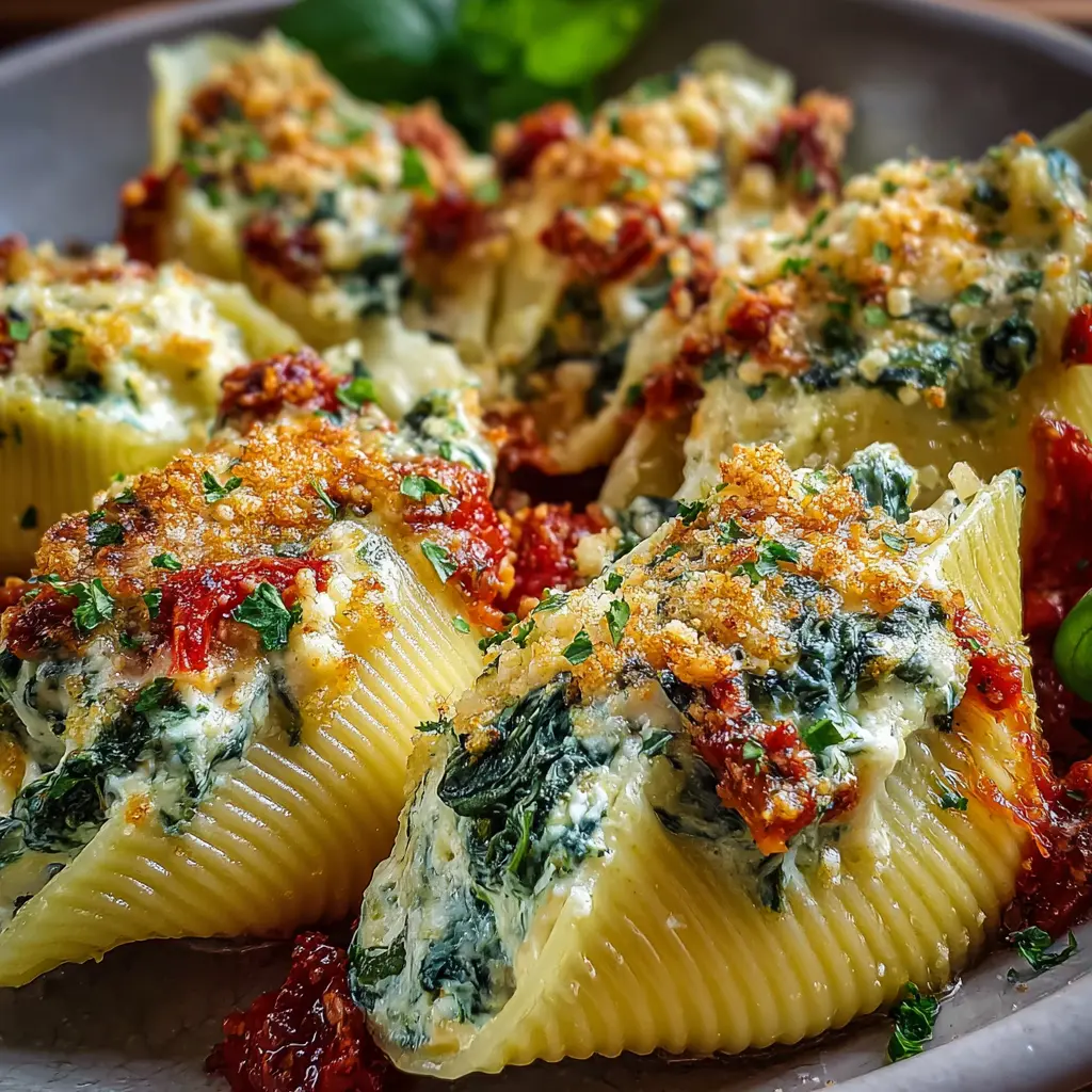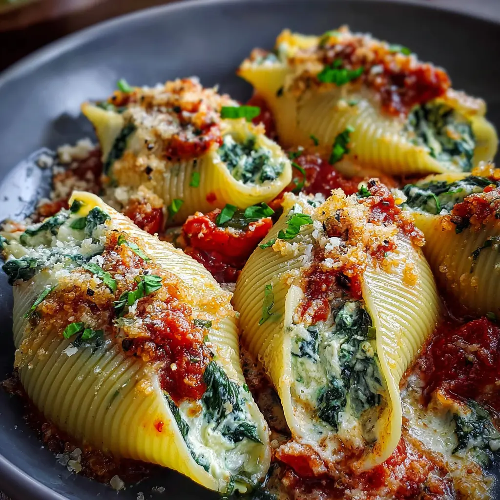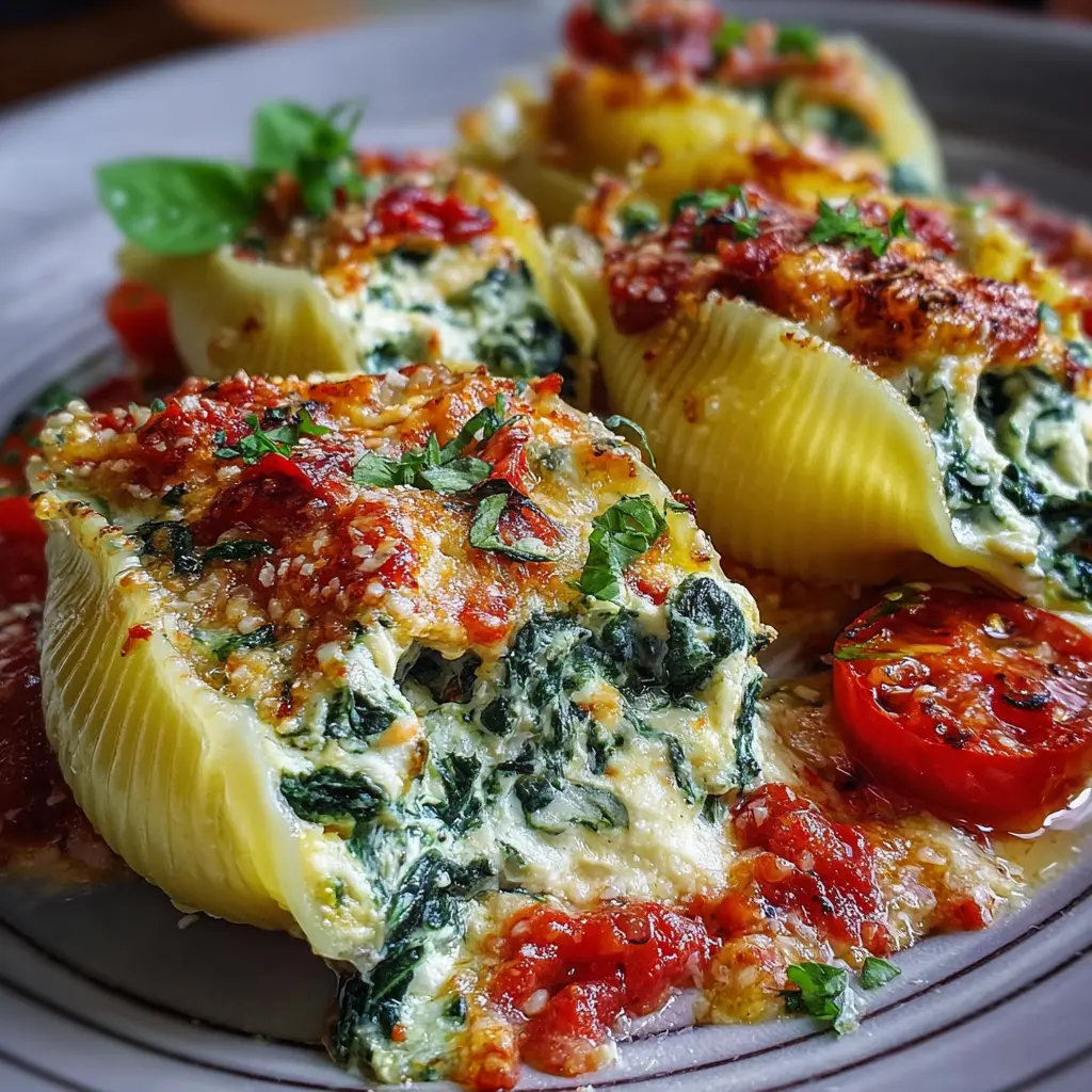 A delicious and comforting dish that combines spinach and ricotta cheese stuffed inside pasta, baked to perfection.
