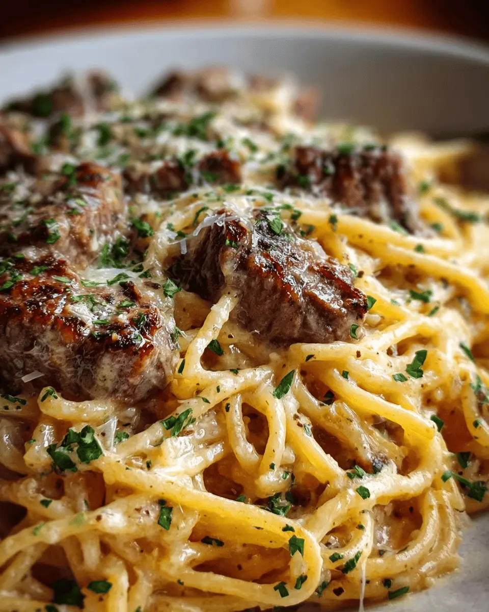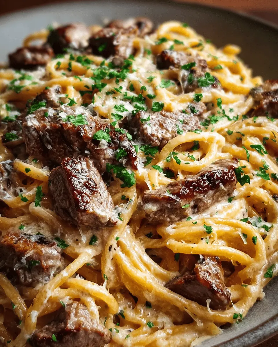 Steak Alfredo Spaghetti: Indulgent Creamy Parmesan Delight