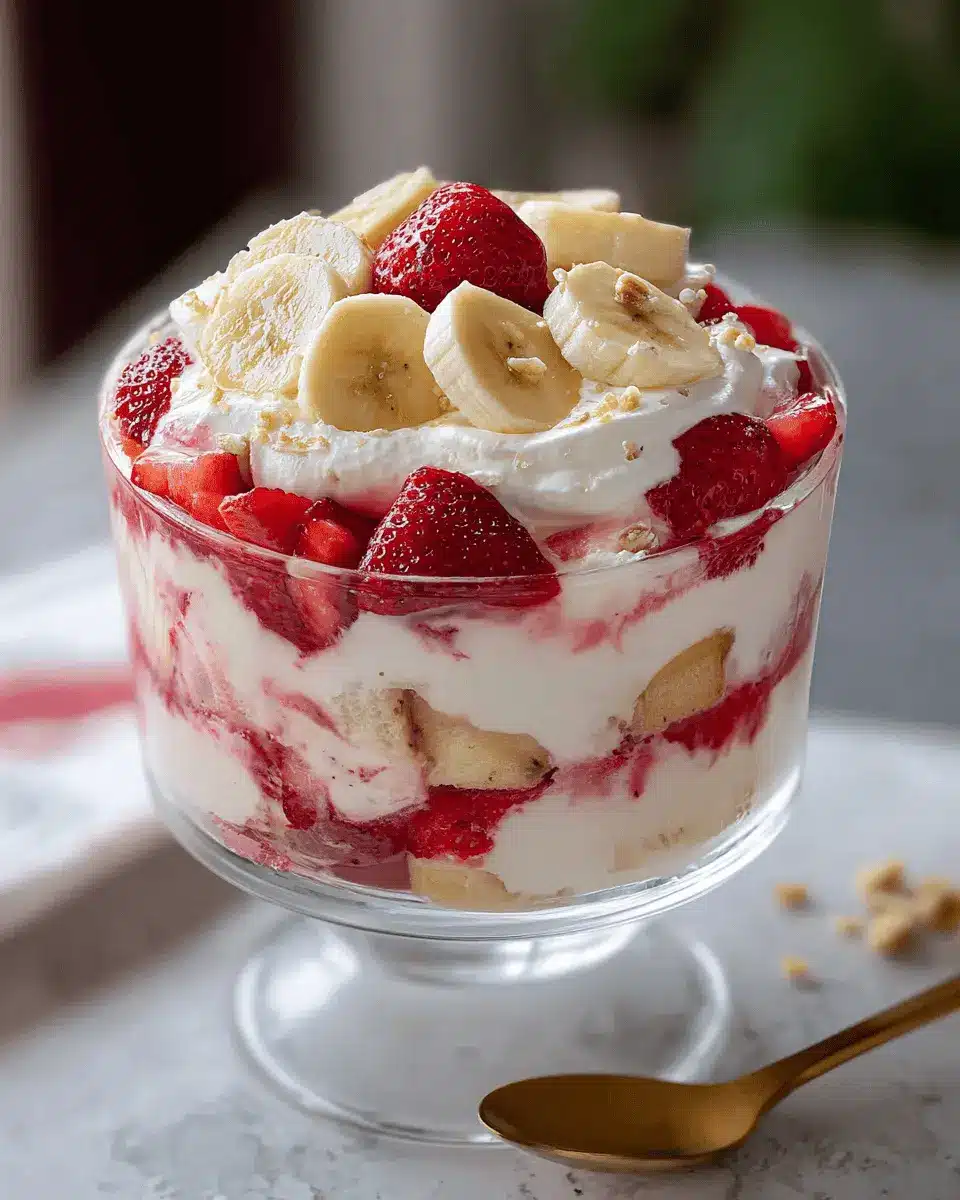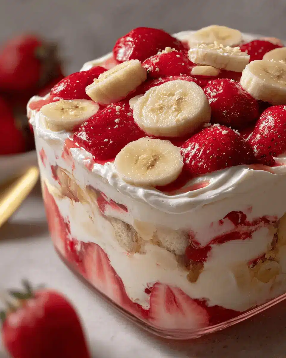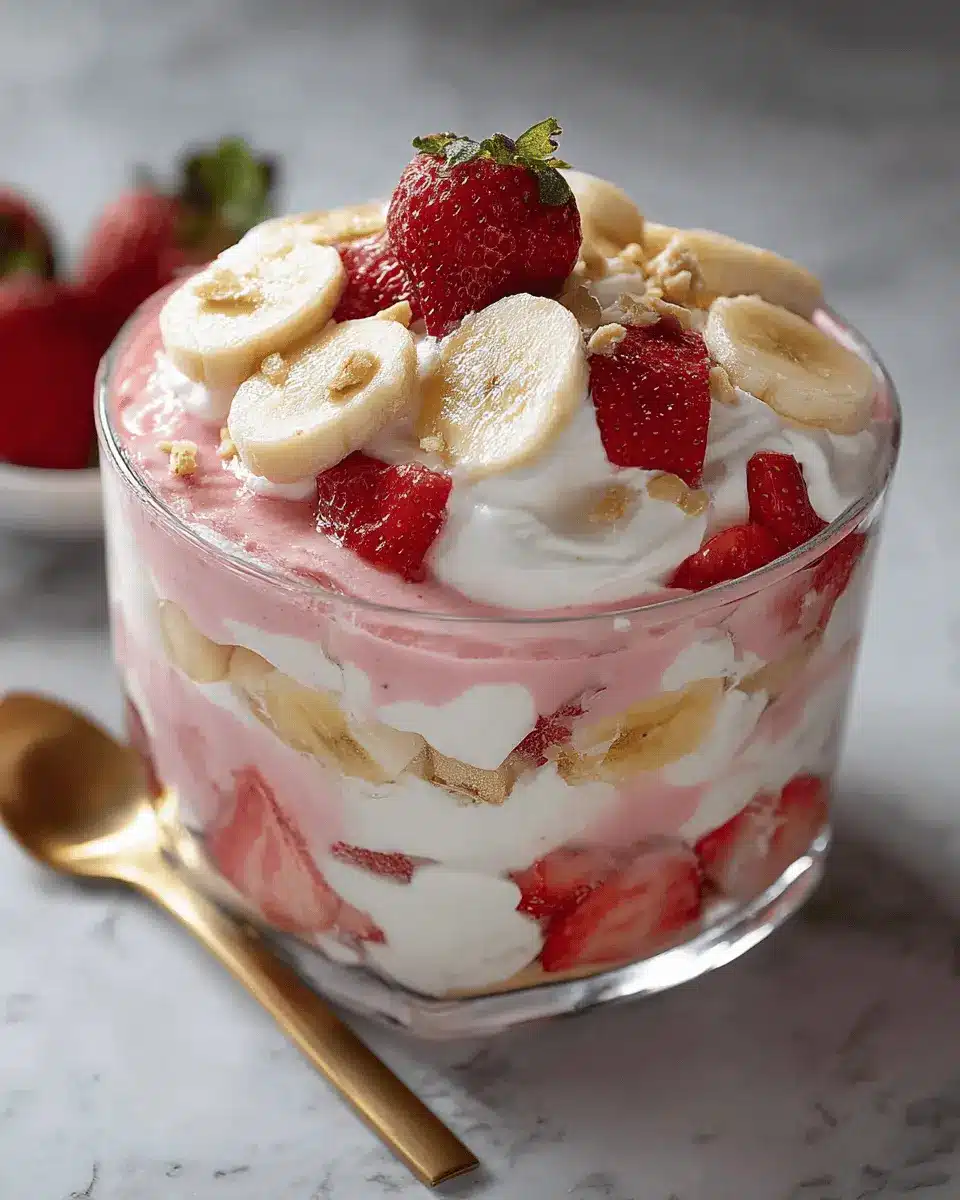 This dessert is incredibly versatile, ready to accommodate last-minute gatherings or cozy nights in. It can be layered beautifully in individual cups for a sophisticated touch, or served in a large bowl for a family-style feast. Whether you’re sharing with friends or indulging alone while binge-watching your favorite series, strawberry banana pudding makes every occasion feel extra special.