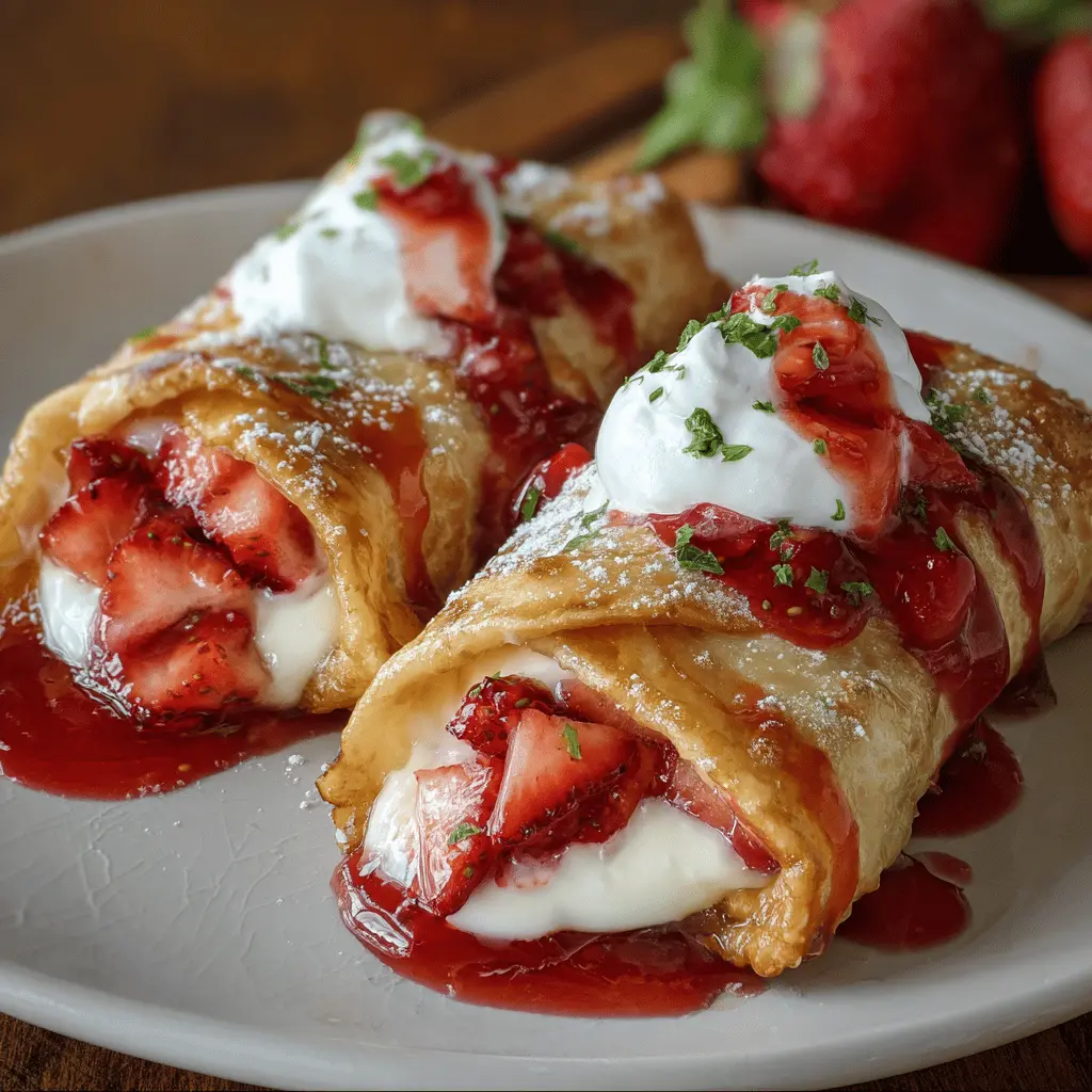 Presentation matters, especially when you’re sharing these delightful treats with friends. Serve your strawberry cheesecake chimichangas on a vibrant plate or a rustic wooden board, garnished with fresh strawberries and mint for color. You could even create a mini dessert bar—let your guests choose their favorite toppings while building their own chimichanga masterpieces! With a bit of creativity, you’ll not only impress your guests but also turn dessert into a fun, interactive experience.