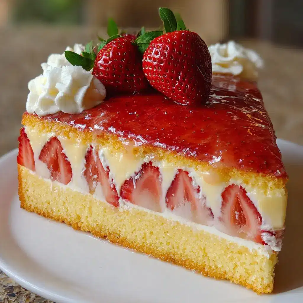 Refrigerate your assembled Strawberry Custard Delight Cake for at least two hours. This chilling time allows the layers and flavors to meld beautifully. Once you’re ready to serve, slice into the tender layers and enjoy! This cake pairs wonderfully with a cup of tea or coffee, making it a perfect choice for gatherings or casual afternoons.