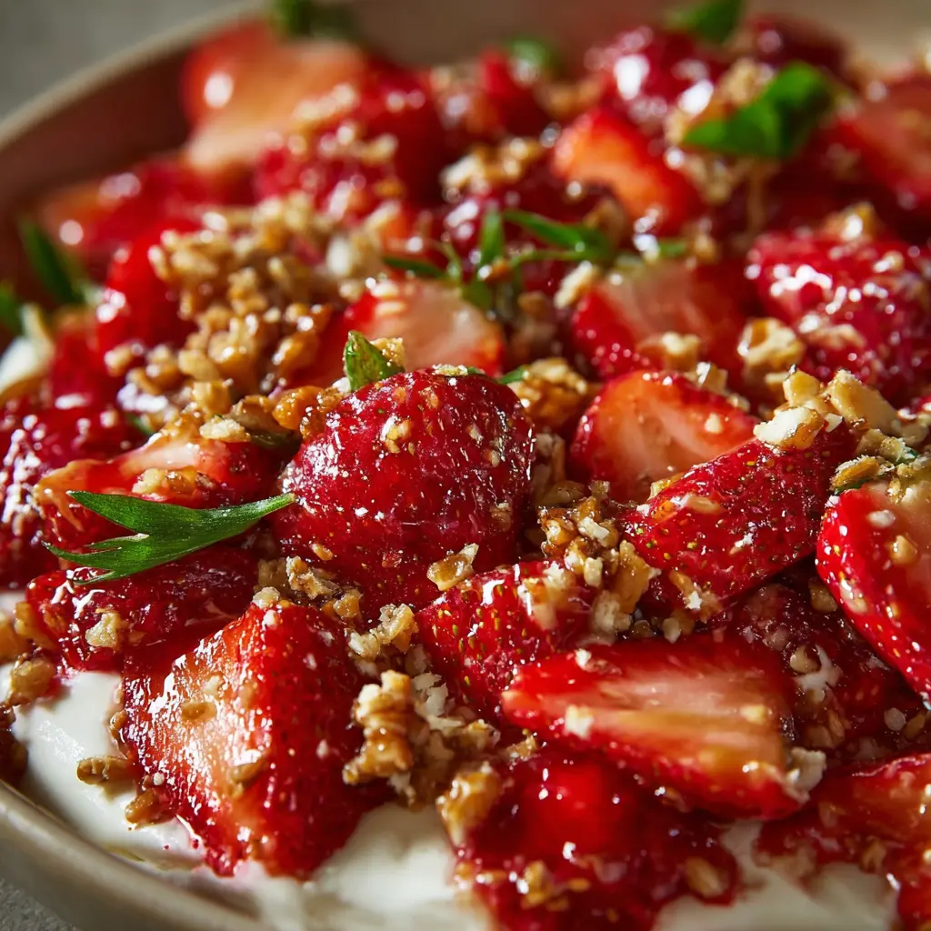 Great Presentation: The vibrant red strawberries atop a creamy base make this dish inviting and perfect for display on any dining table.