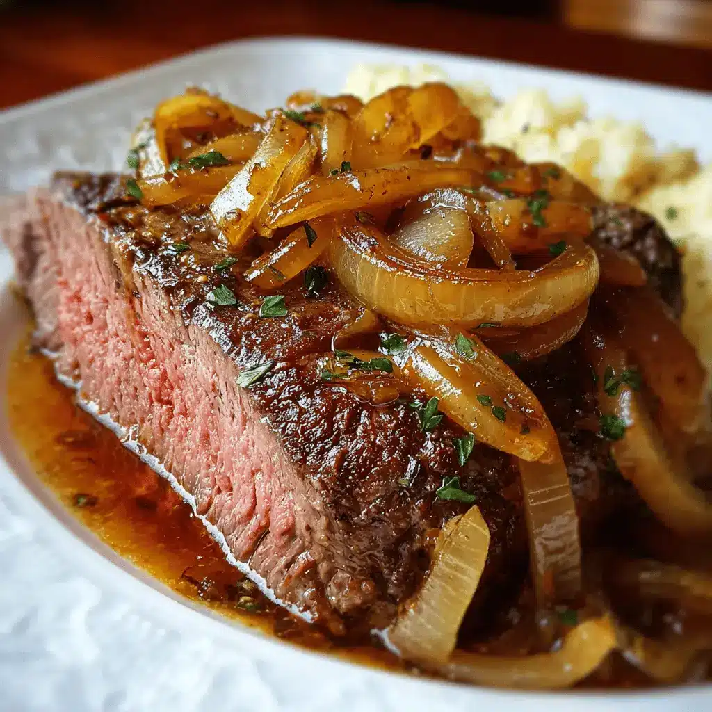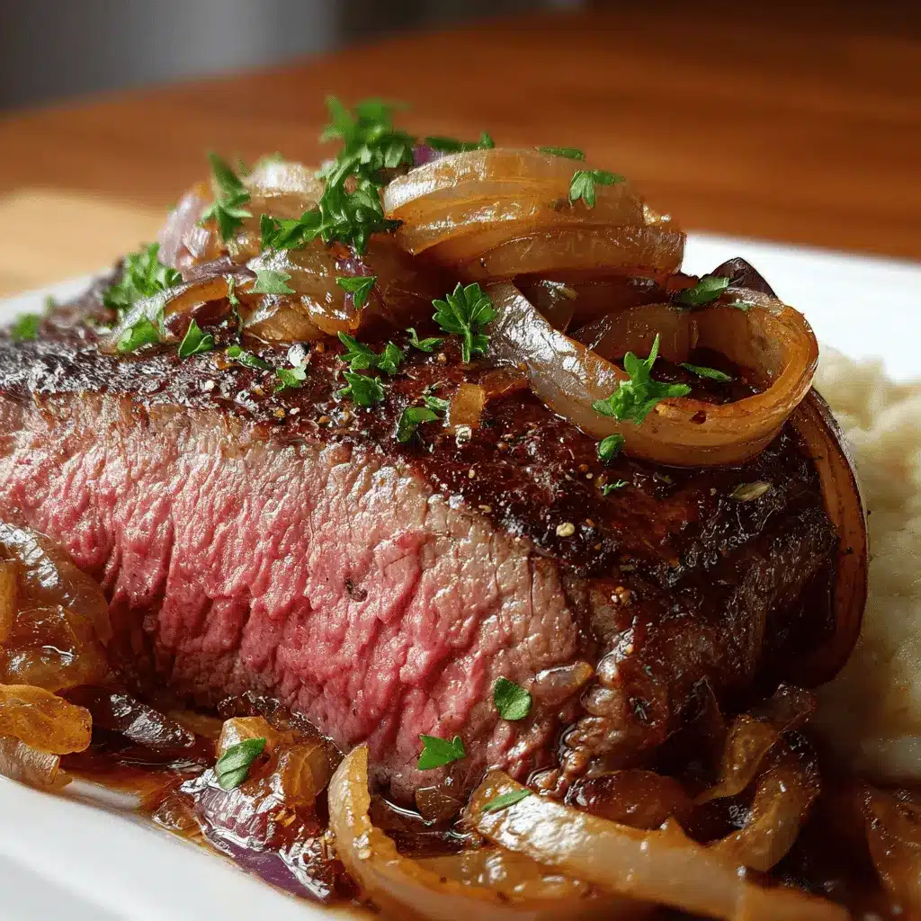 Now, it’s time to bring everything together. Slice your perfectly seared beef against the grain, serving it alongside those beautifully caramelized onions and a generous ladle of gravy. Think about garnishing with freshly chopped parsley or thyme for a pop of color and freshness.