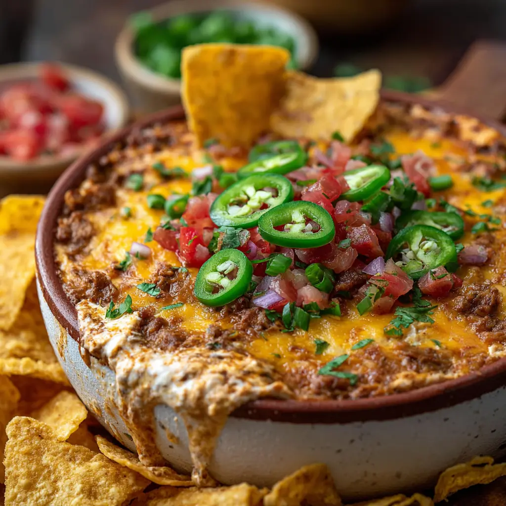 - Ground Beef: 1 cup, cooked and crumbled for a heartier dip.