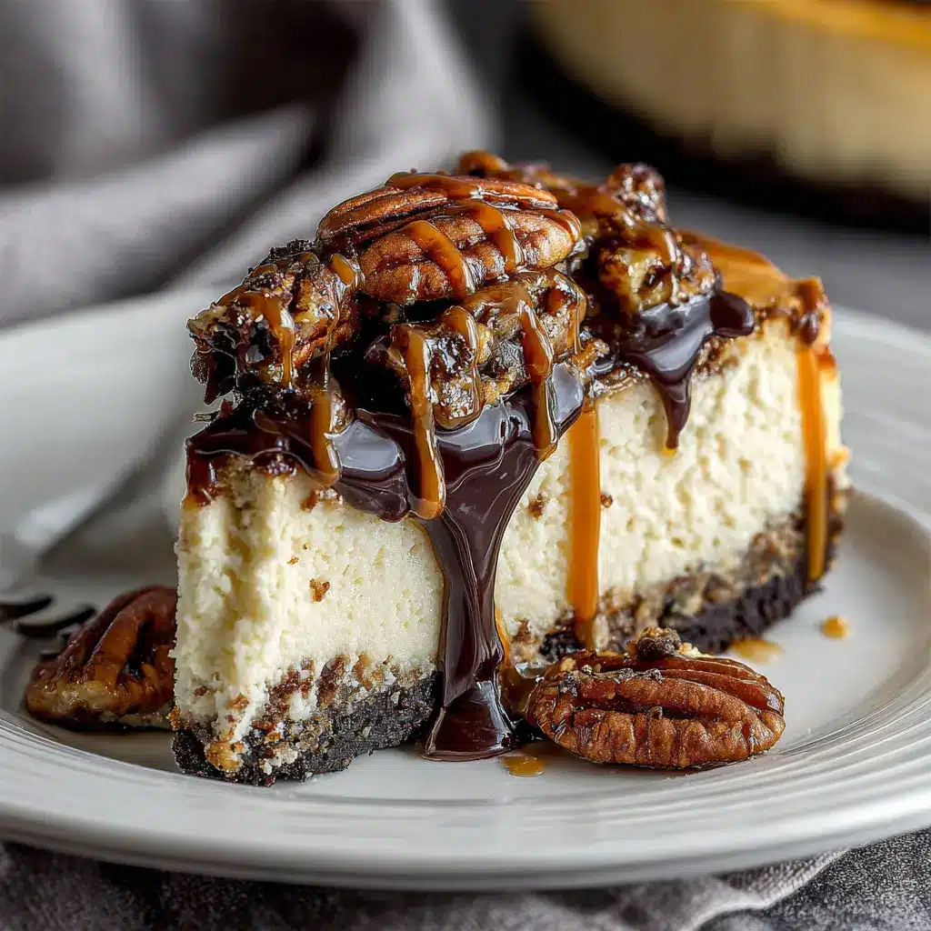 Impressive Presentation: With its luscious layers drizzled in chocolate and caramel, this cheesecake presents beautifully. Whether you’re hosting a small gathering or bringing a dish to a potluck, it’s guaranteed to be the star of the show, inviting compliments and inquiries about the recipe.