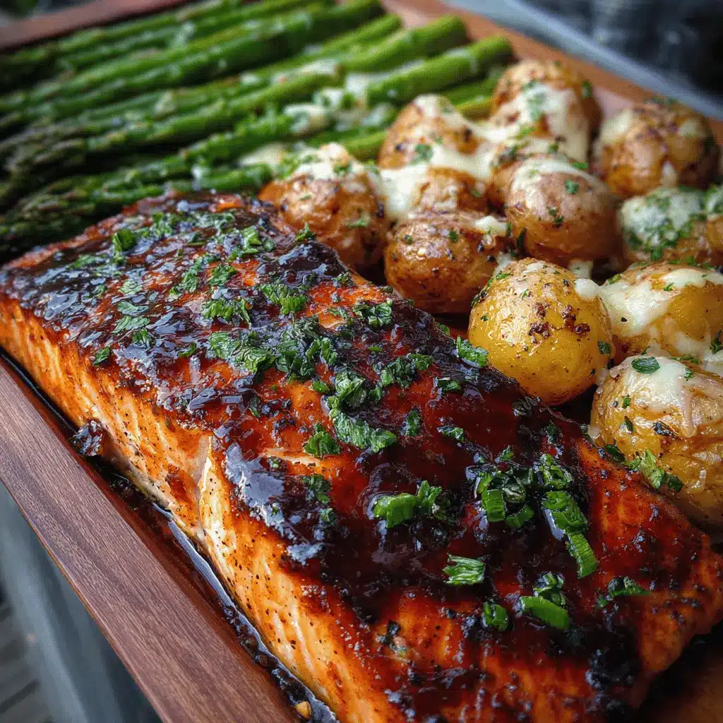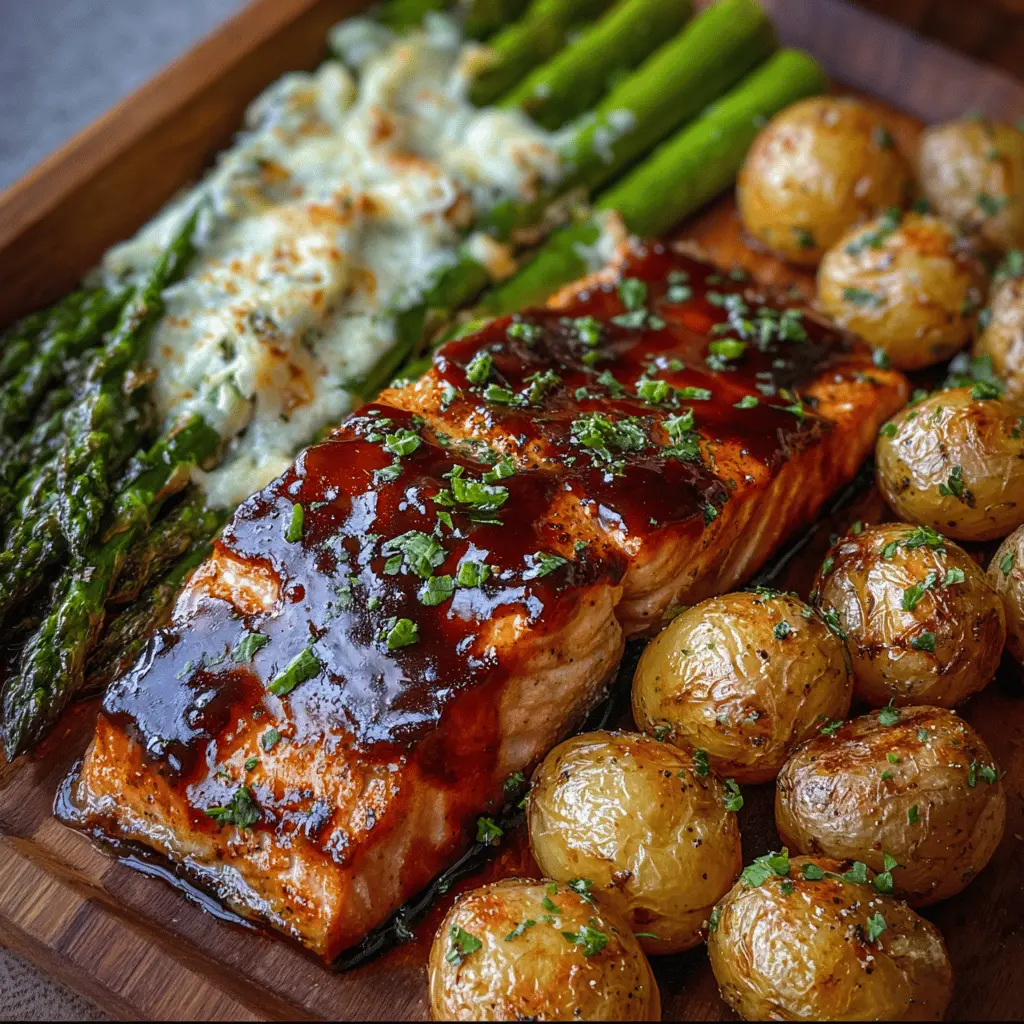 Ultimate BBQ Glazed Salmon: Easy Cheesy Asparagus & Baby Potatoes